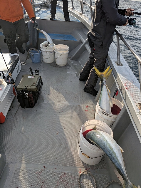 鰤爆釣しました、前半鳥山で大量感度通過するもショートバイトのみでキャッチならず、終盤に再び