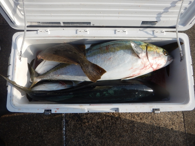 連発のアングラーも・・・そしてクーラー満タン続出、残りの時間はホームの巨鰤狙いで移動、エントリーサイズは出ませんでしたが何とか9キロクラス2本ゲット、今日は鰤爆出来ました。 |