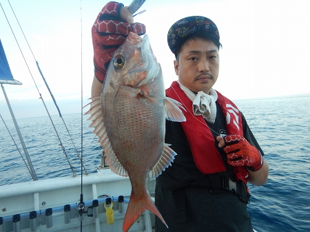 8時からはポツポツ船中どこかで一人二人のロッドが曲がってました、今夜も棚は深く40~60m位でした。