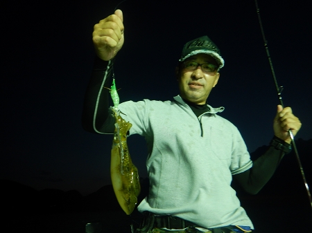 アオリイカからスタートしました、暗くなりすぐ姿見えだしました、しかしイカメタルとオモリグは苦戦
